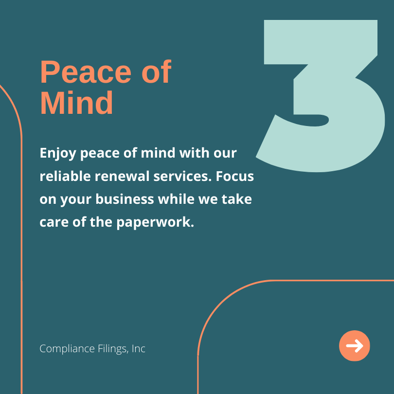 With Compliance Filings, you can trust that your renewal is in good hands, giving you the freedom to pursue your business goals without distractions.